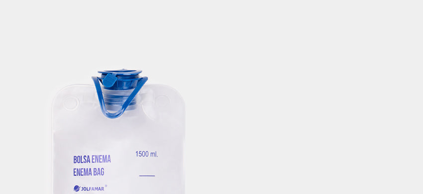 La bolsa para enemas AARON, presenta un diseño con tapón hermético que evita fugas y permite que la bolsa pueda ser manipulada incluso estando llena.