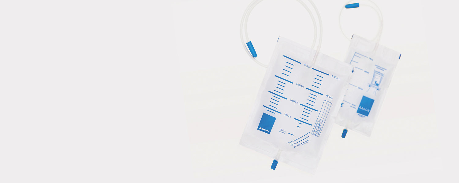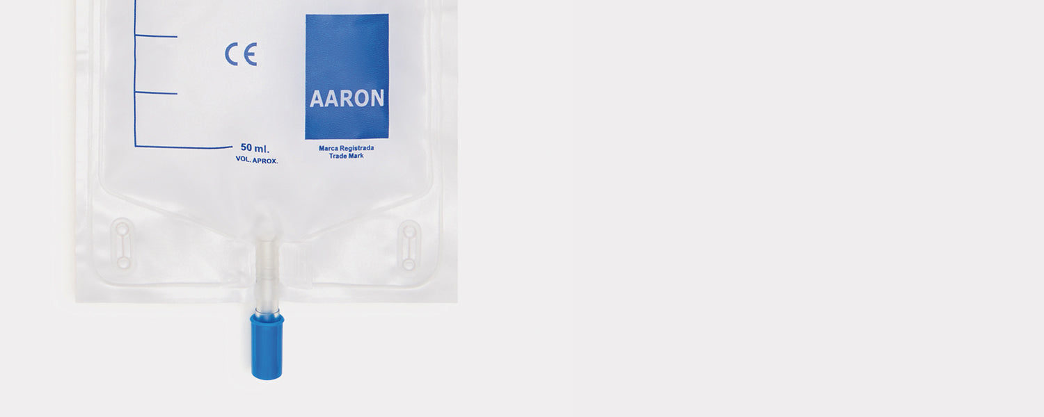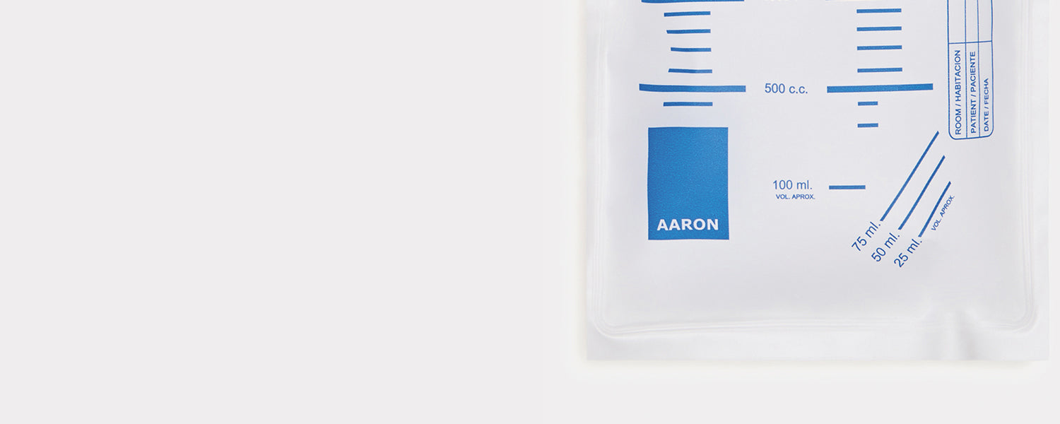 Las bolsas de orina AARON están fabricadas con doble soldadura en todo el contorno para un mejor acabado y resistencia ante impactos.